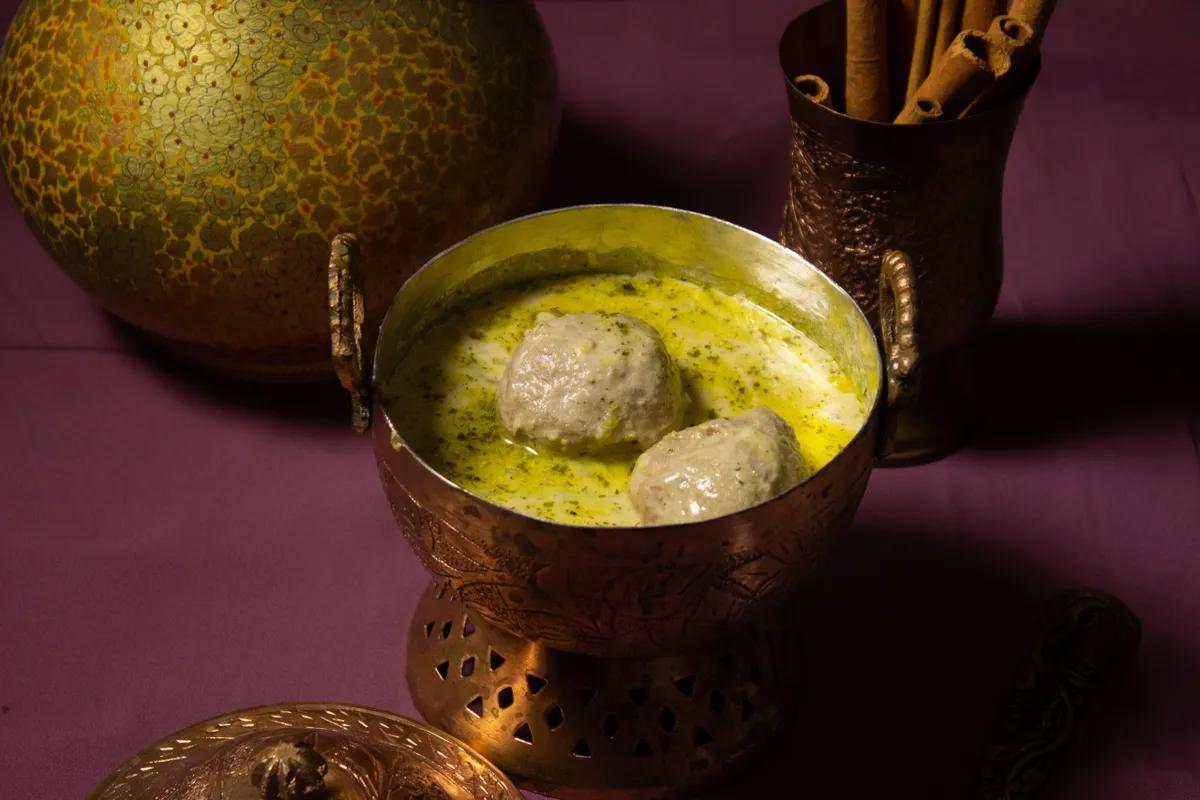 Exquisite lamb roasted with yogurt, spices, and shallot puree, topped with coriander. Served with rice and Kashmiri condiments.