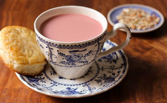 It is a salty green tea prepared with butter, cream, and walnuts.